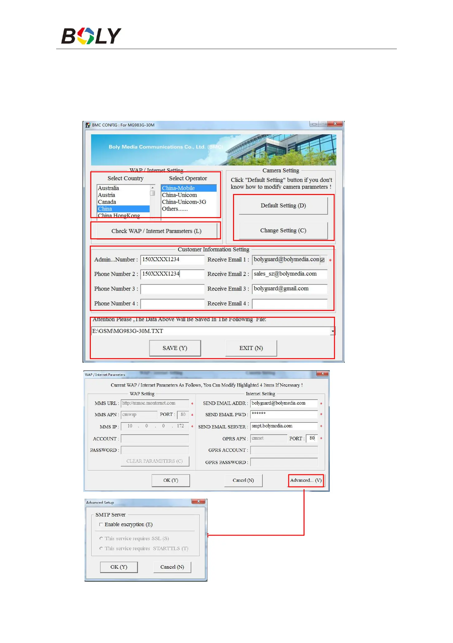 server such as “smtp.gmail.com” or “smtp.bolymedia.com.”