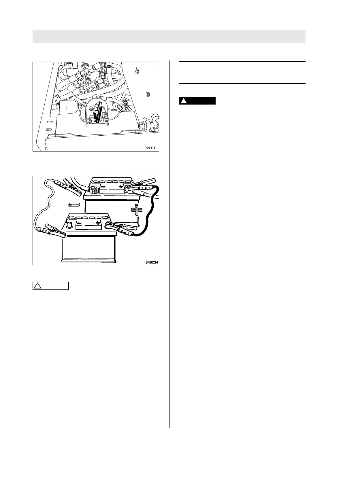 l When starting with an external battery connect