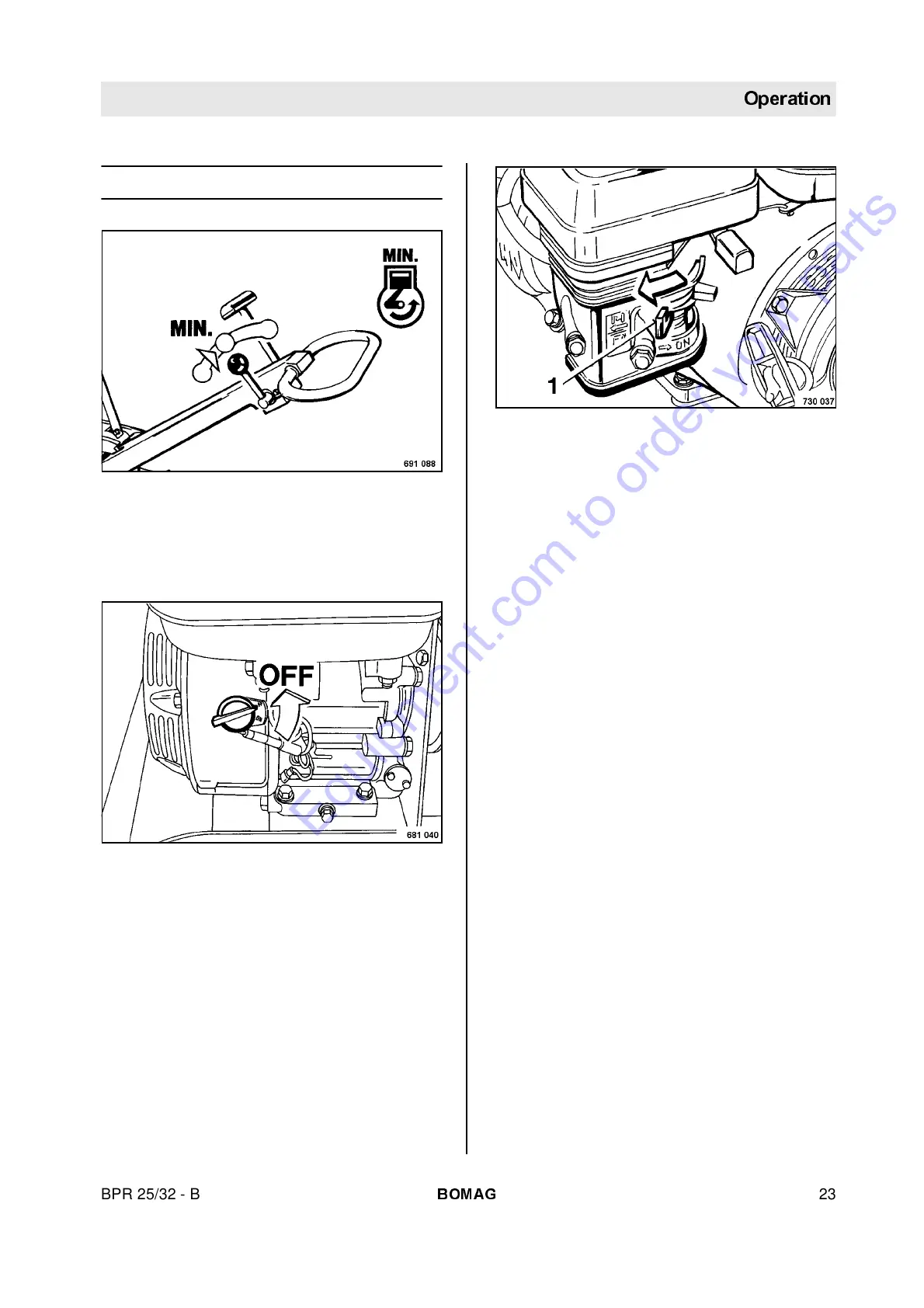 ● Close fuel cock 1 (Fig. 21) by turning in direc-
