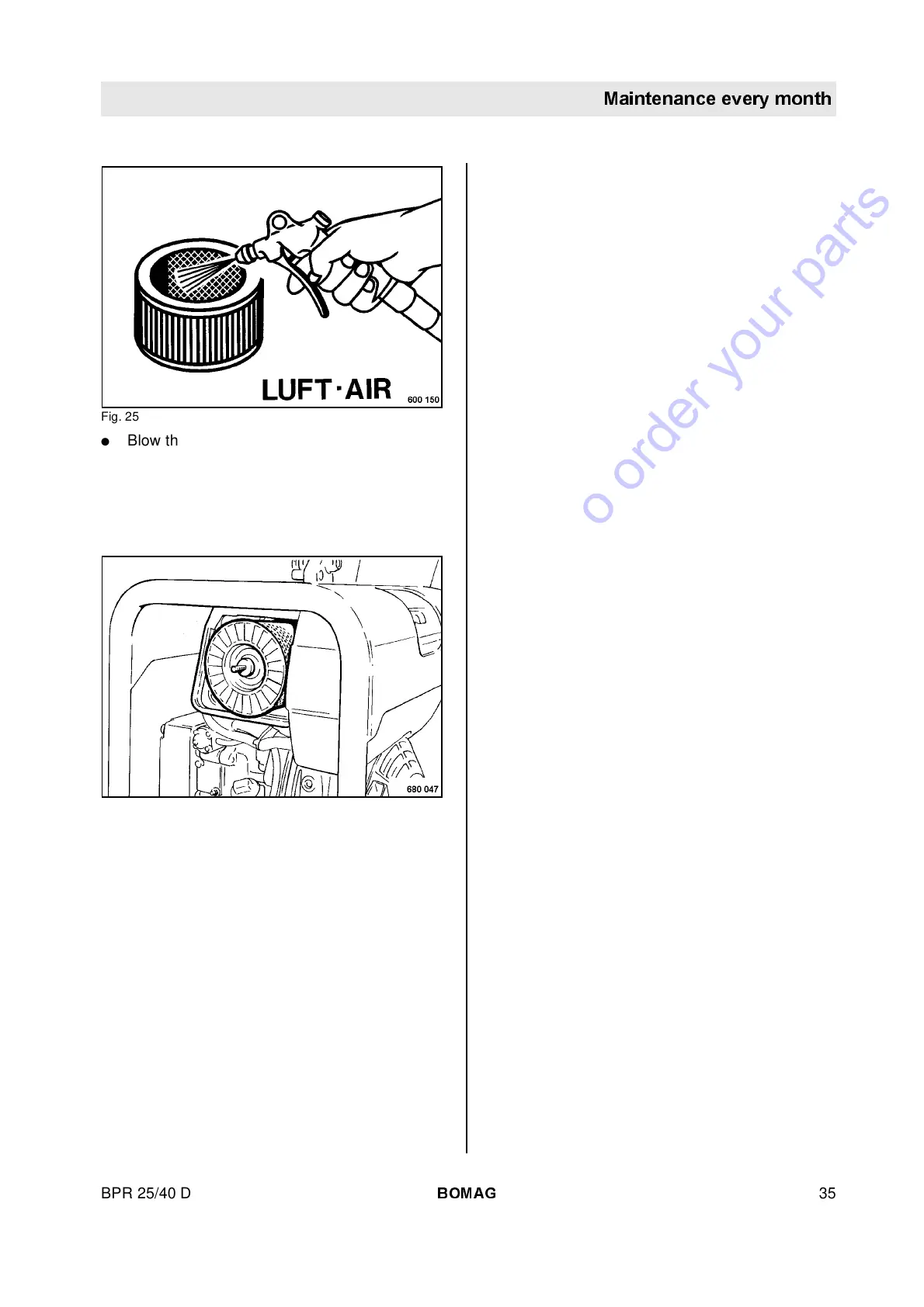 ● Blow the filter cartridge (Fig. 25) out with dry