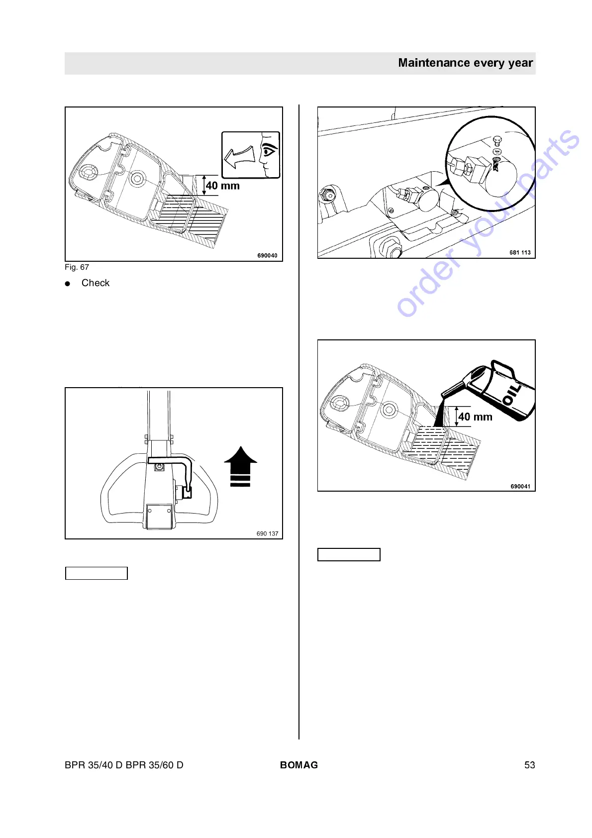 prox. 40 mm below the filler opening (Fig. 67),
