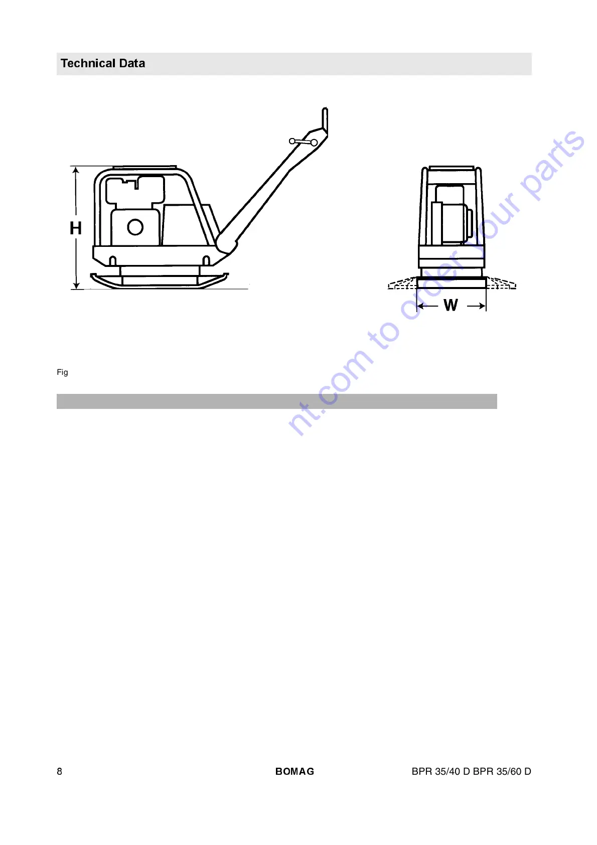 Dimensions in mm Working width W lowest passing height H