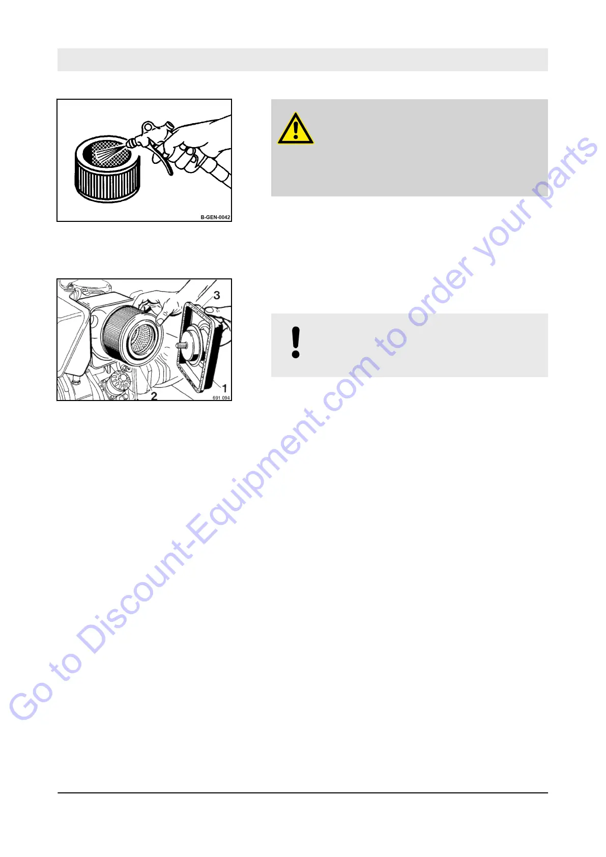 10. Slide the air filter (2 ) carefully into the filter housing.