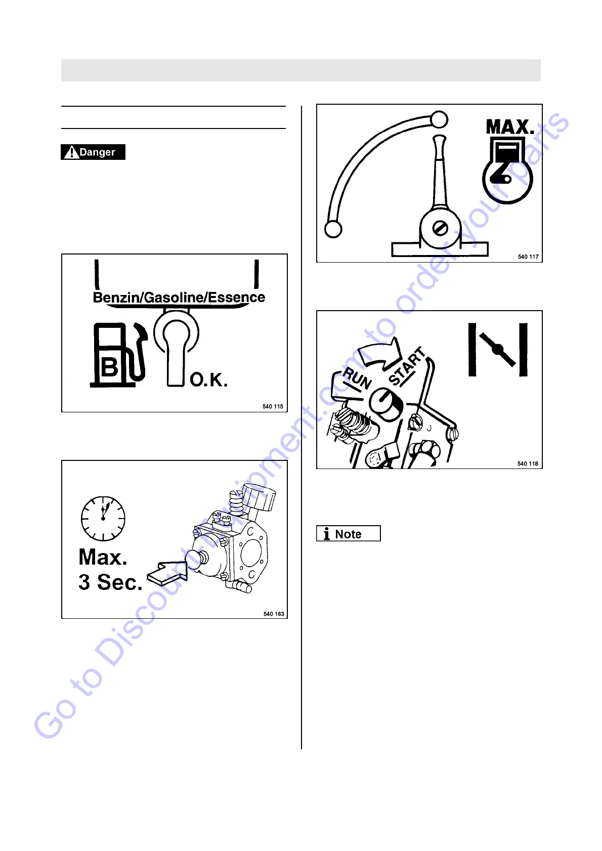 Set the throttle lever (Fig. 3) to "MAX"-position.