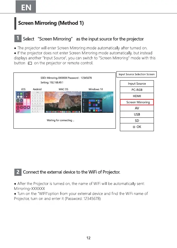 BOMAKER GC355 - Screen Mirroring (Method 1); Connecting iOS and Android Devices