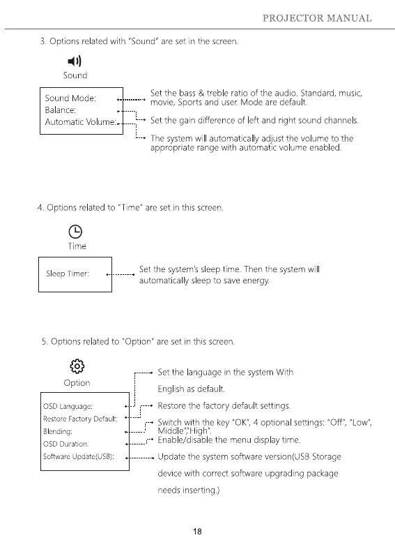 BOMAKER GC355 - Sound and Time Settings; Option Settings