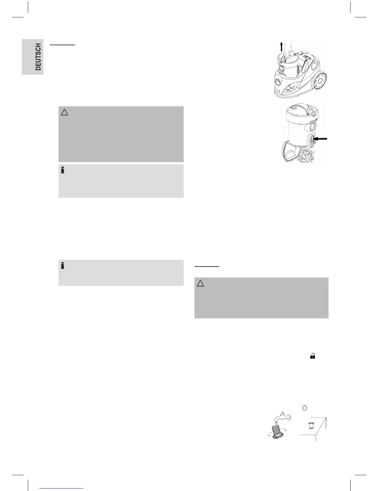 Staubbehälters. Drücken