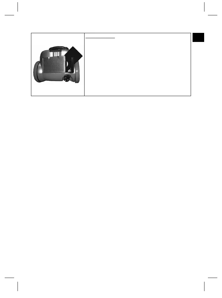 zich achter de stofzak. Reinig de fi lter in warm water zonder toevoegingen en