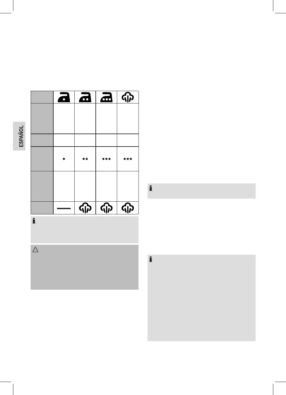 demasiado alta. No queme la colada. Siga planchando