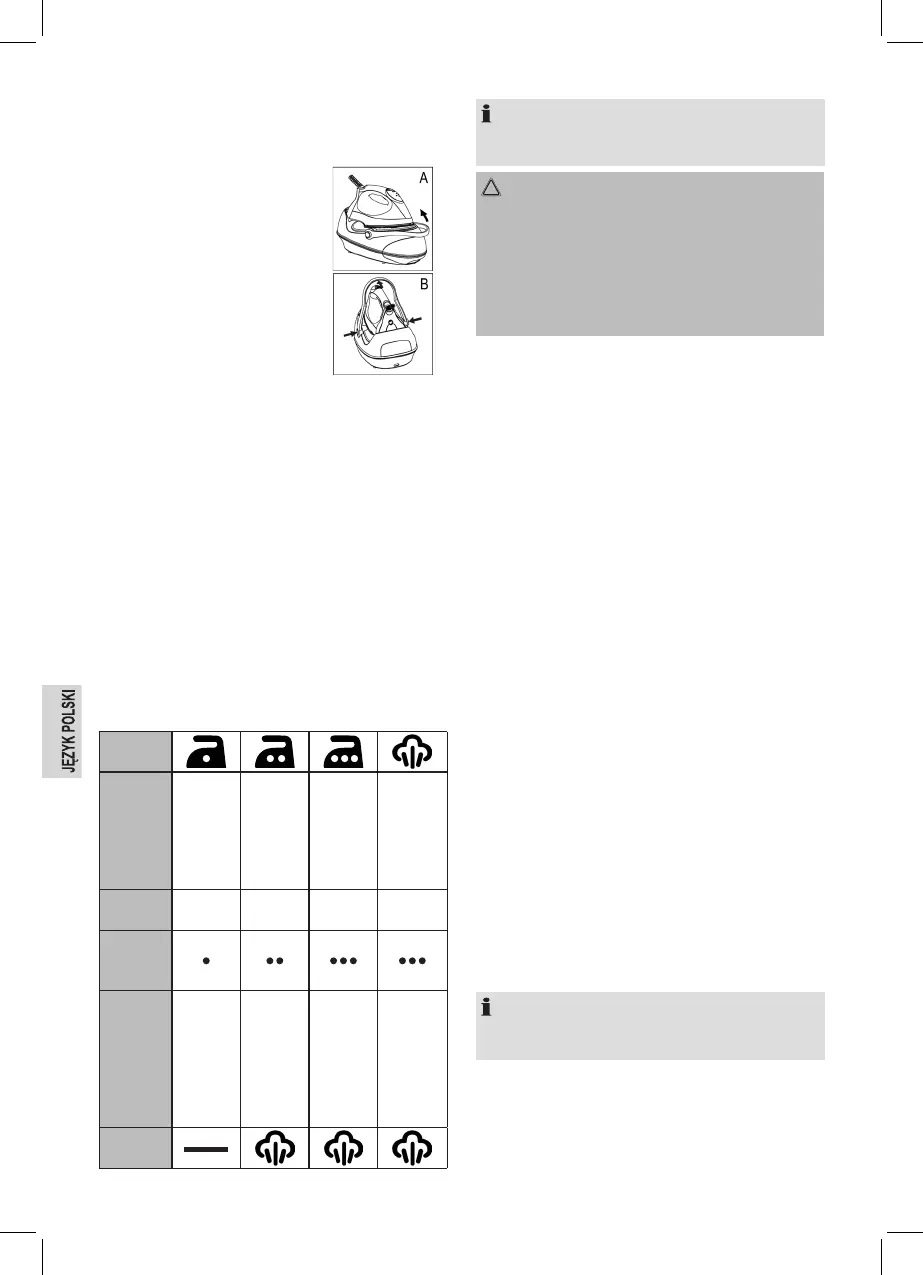 • Stopę prasującą proszę czyścić lekko wilgotną ściereczką.