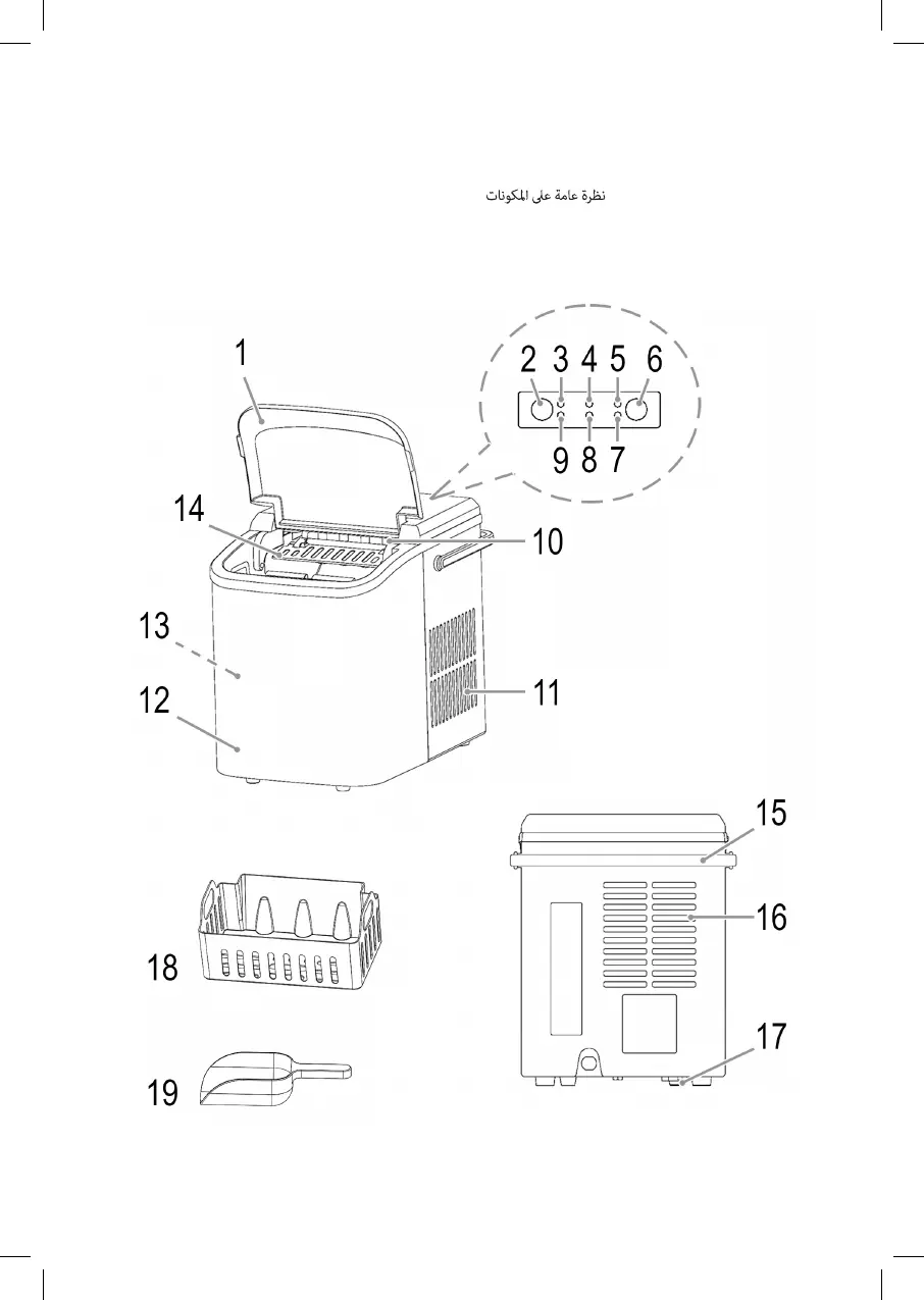 Liste des différents éléments de commande Indicación de los elementos de manejo