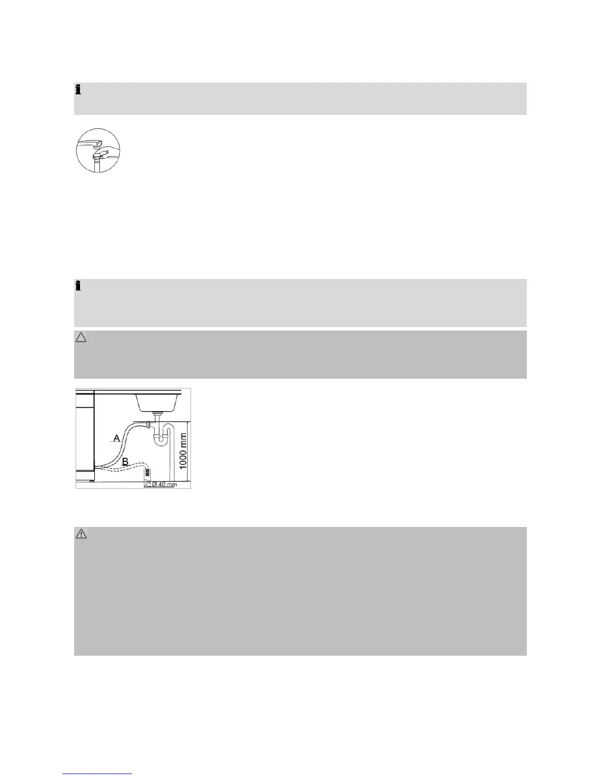• It is allowed to install the hose maximal up to a height of 1000 mm above