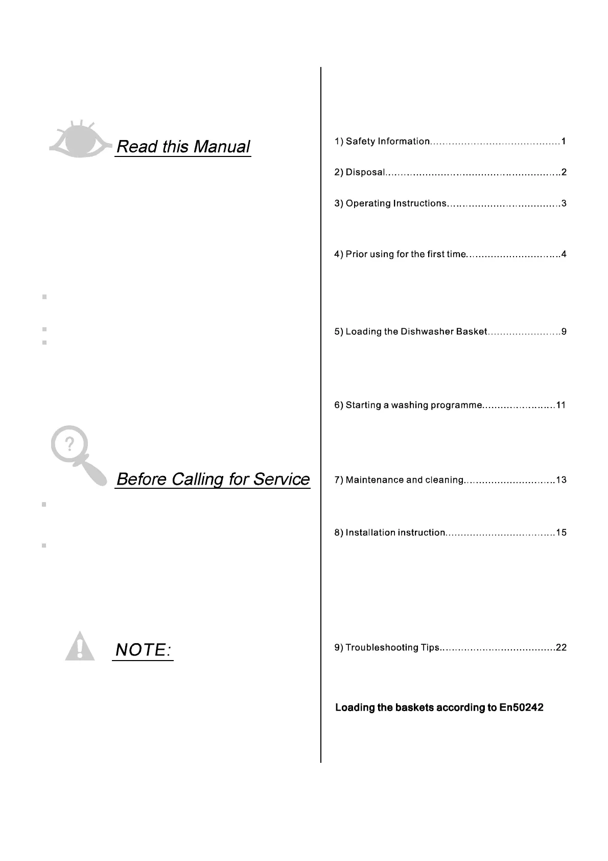 Ca r ing fo r th e Dis hw as he r. ... . .. ... . ... .. .... . . .. ... . .. 14.