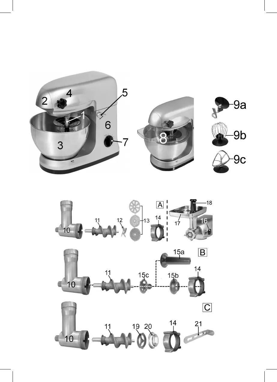 Zubehör/Montage Fleischwolf • Onderdelen/Montage Vleesvermaler • Accessoires/Montage du hachoir à viande