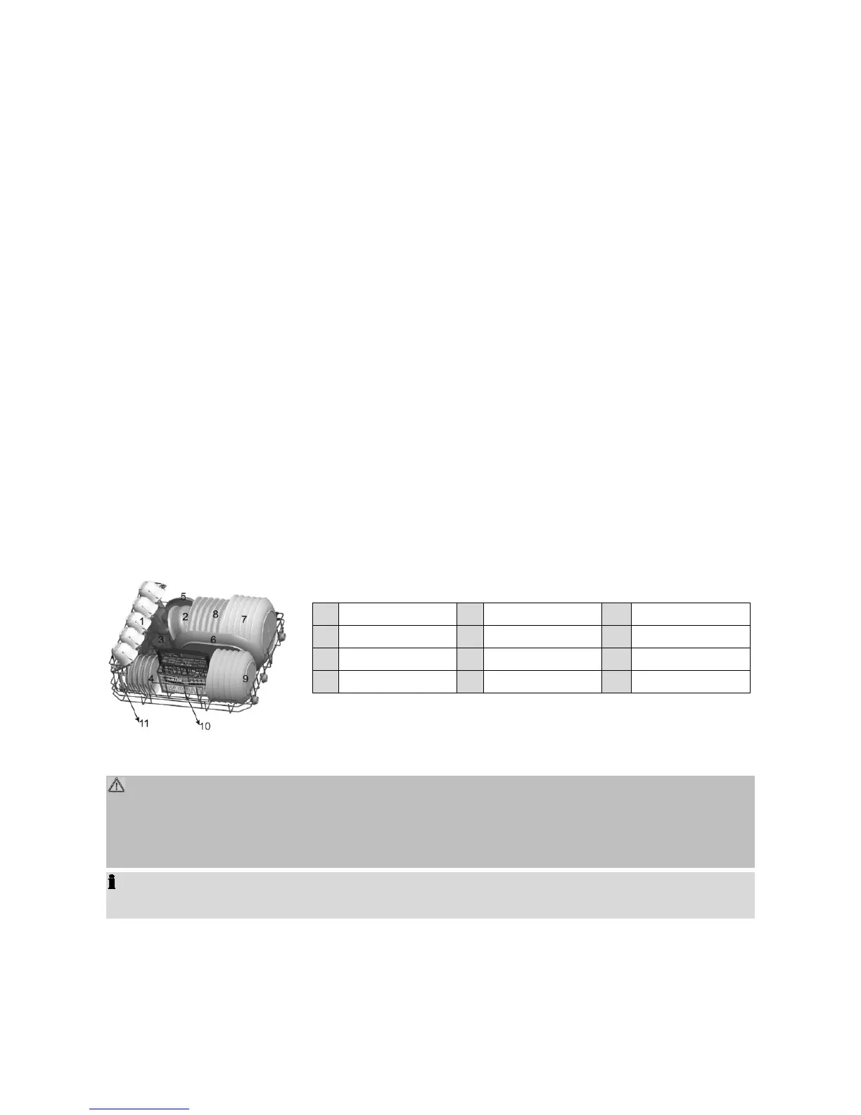 • Knives and other utensils with sharp points must be placed with the tip down in the cutlery basket or in a hori-