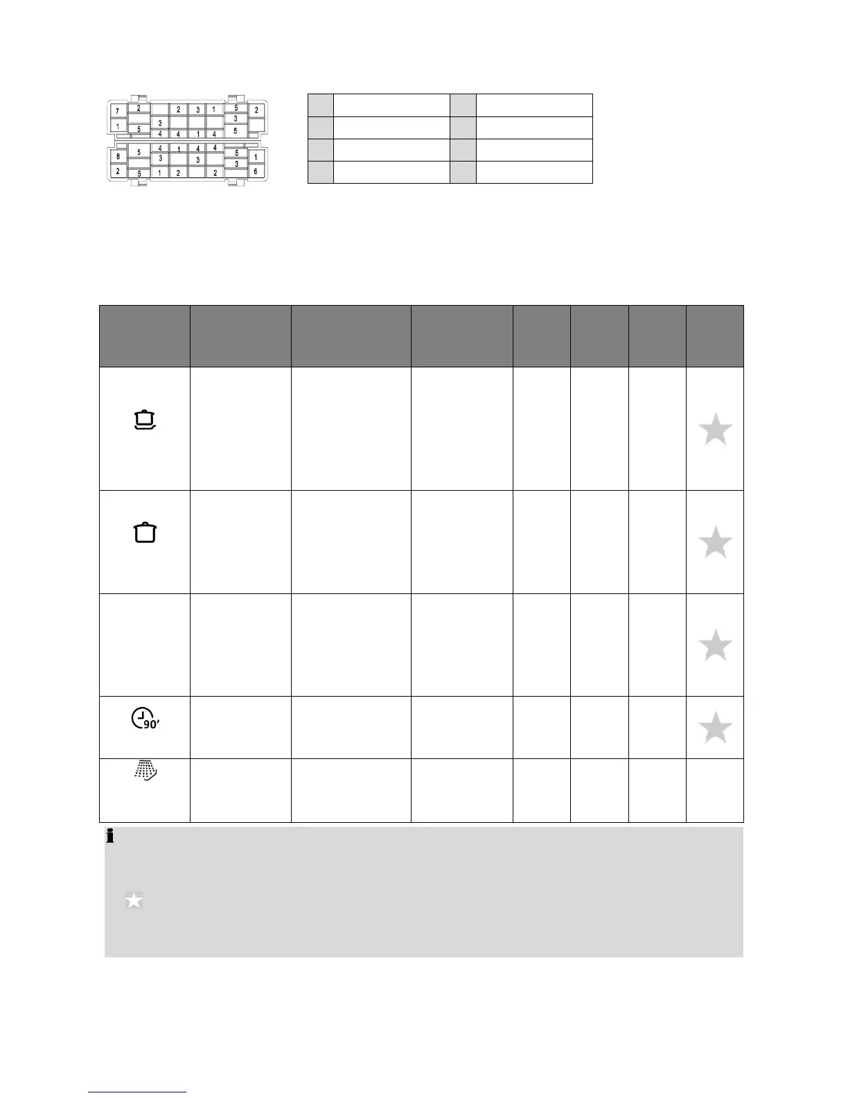 Rinse cycle tableRinse cycle table