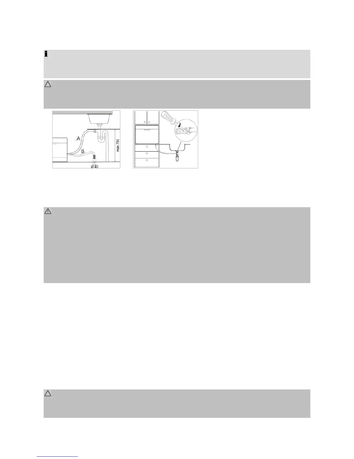 • It is allowed to install the hose maximal at a height of 750 mm to the appliance base.