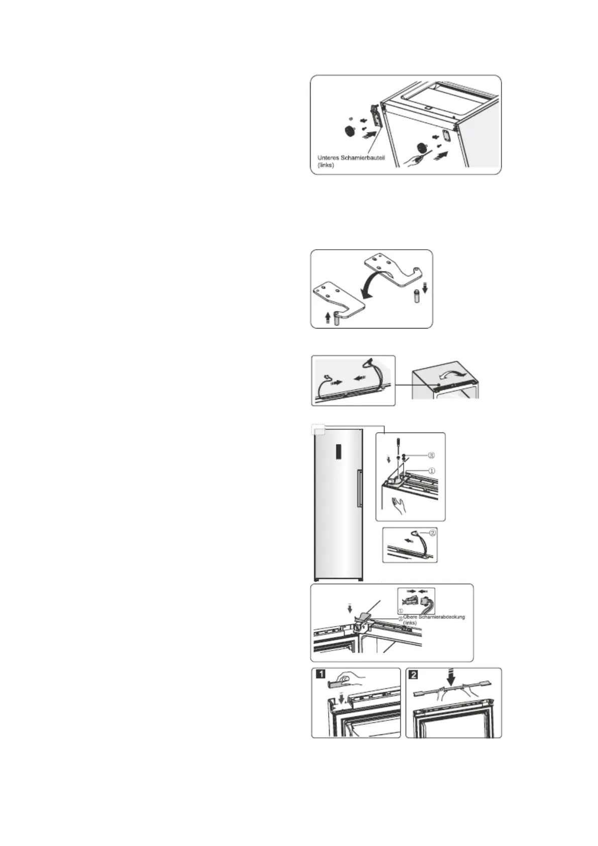 drehen Sie das obere Scharnier um und befes-