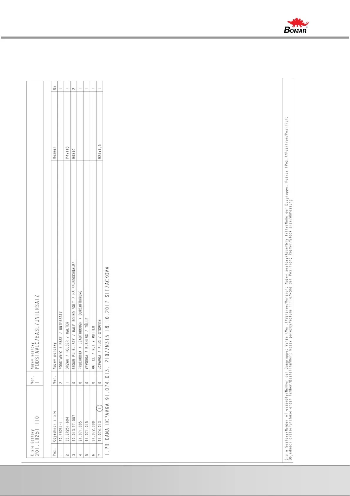 7.8. Kusovník / Piece list / Stückliste -