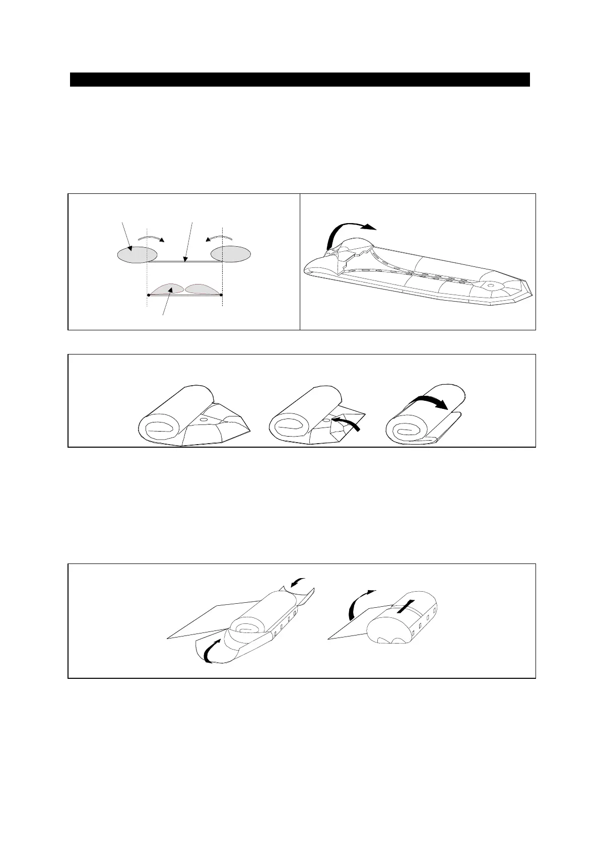 6. Fold in the 2 sides of the main buoyancy tube (A), fold the cones onto the transom, then roll up