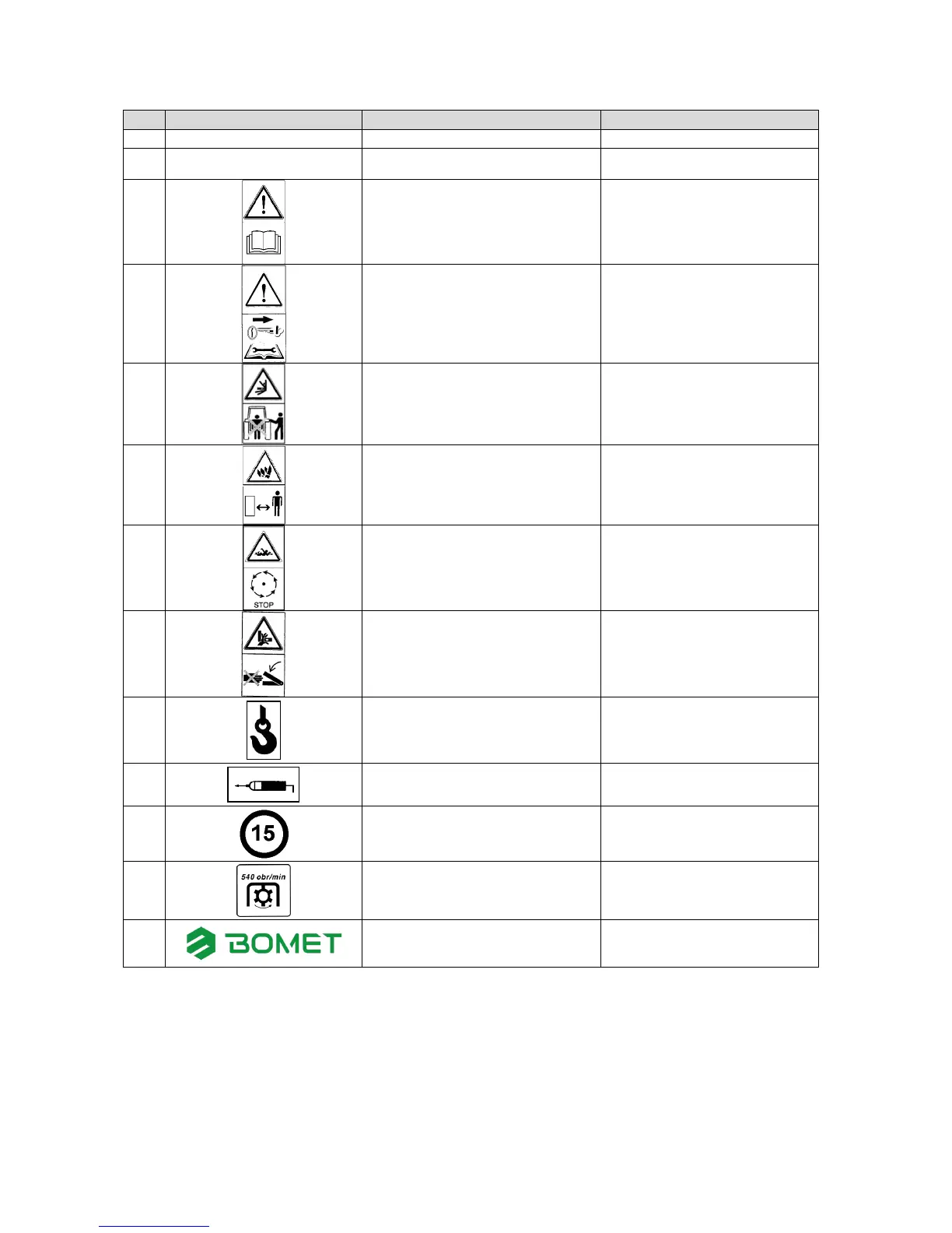 stoppage, according to the appendix B of norm PN-EN ISO 4254-1:2013-08E, at nominal