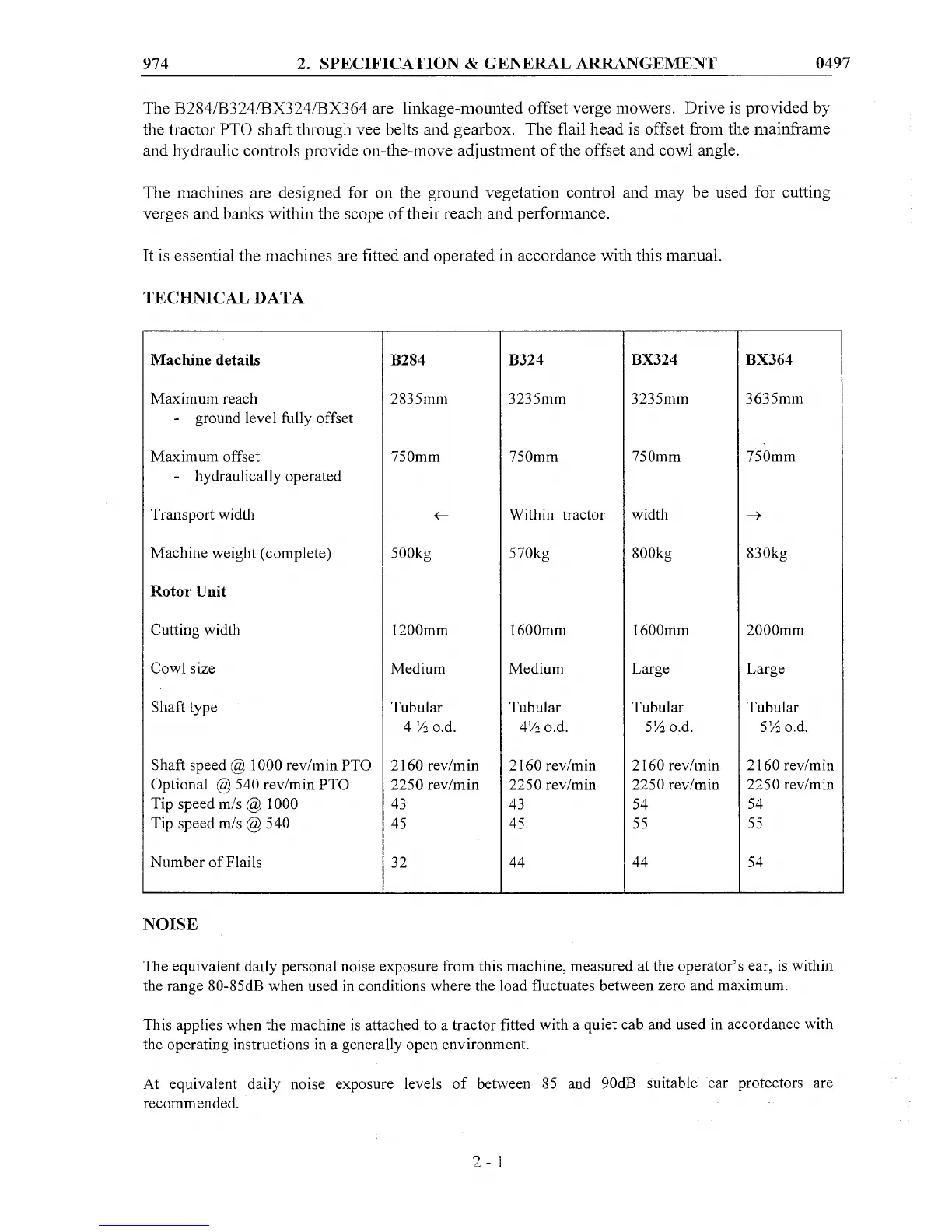 Bomford B324 - 2. SPECIFICATION & GENERAL ARRANGEMENT; TECHNICAL DATA; NOISE