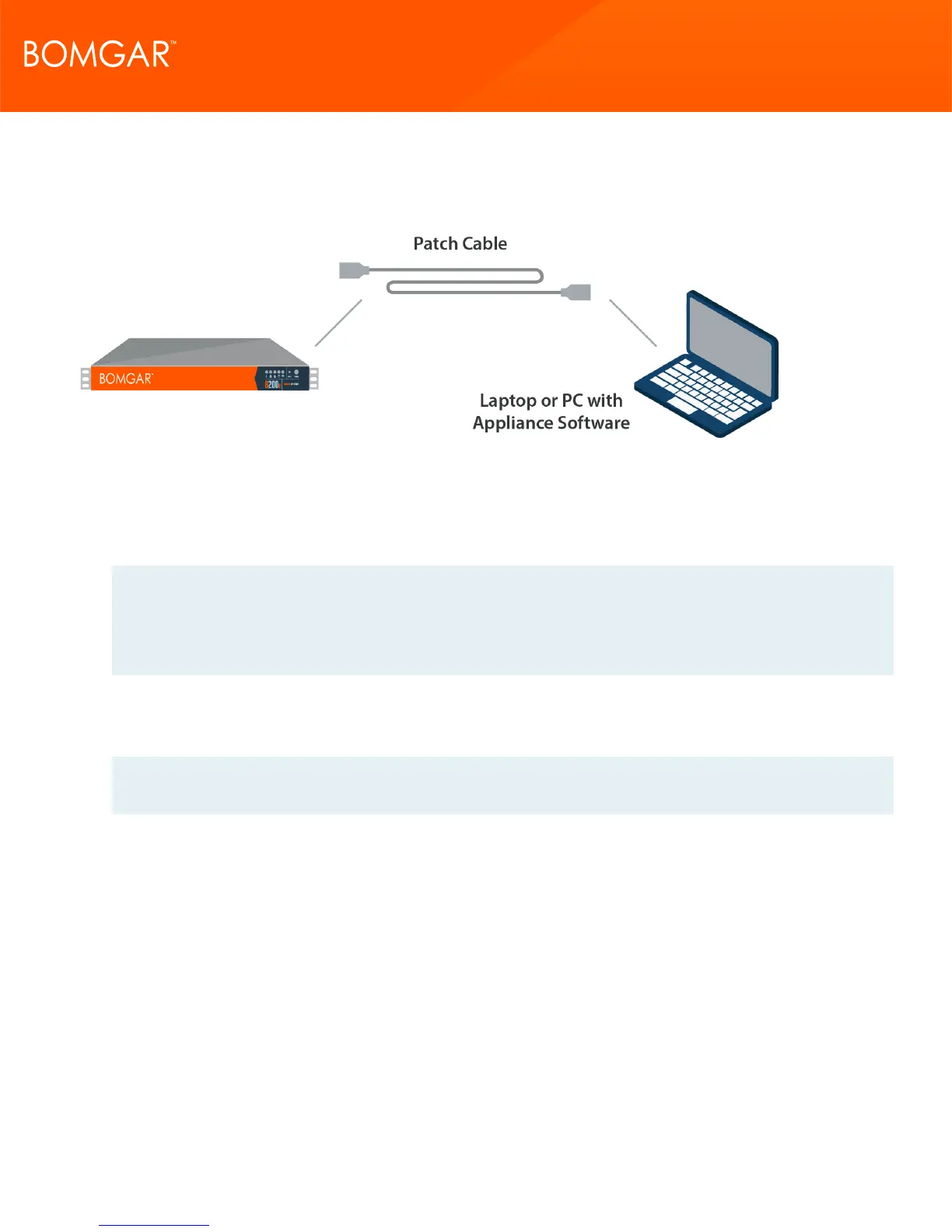2. Using one of the patch cables provided, connect your computer to NIC1 or NIC2 on the rear of the Bomgar Appliance. You