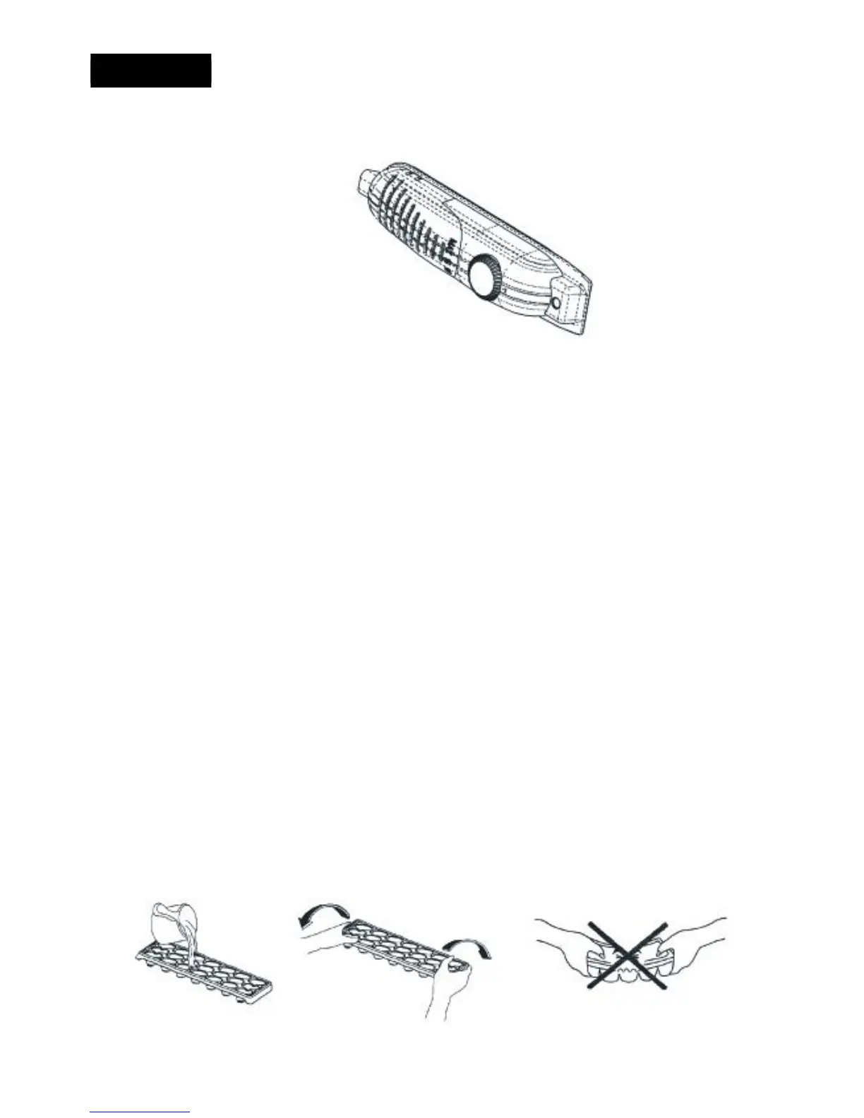 • Riempire il vassoio di acqua ed inserirlo nello scomparto freezer.