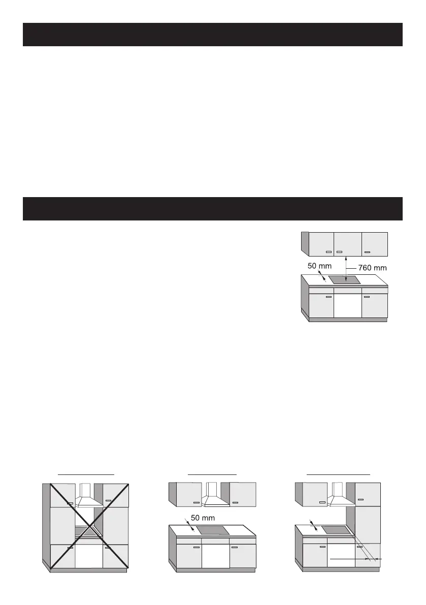 - 50 mm distanza di sicurezza minima a sinistra dell’intaglio del piano di lavoro fino al mobile adiacente