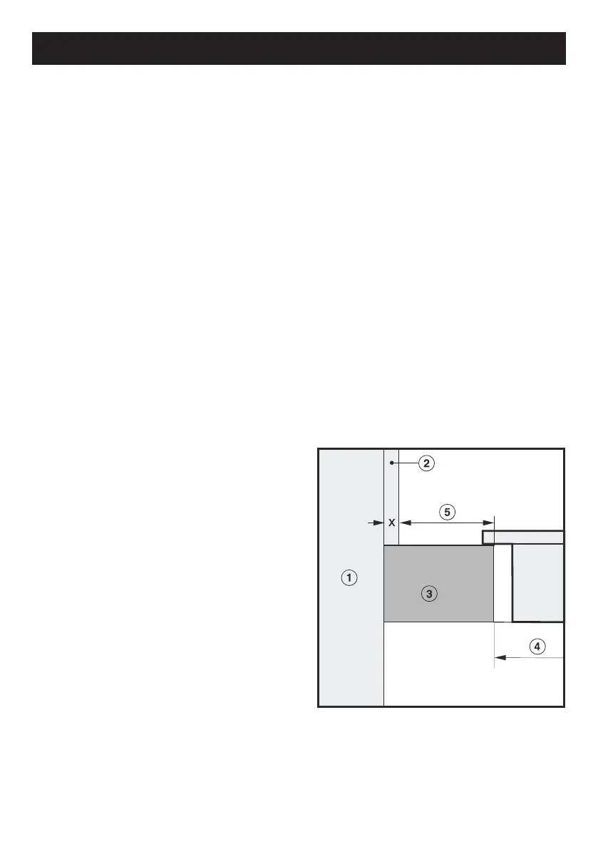 - Se il rivestimento è in materiale infiammabile (p.es. legno) la distanza minima tra intaglio del piano di