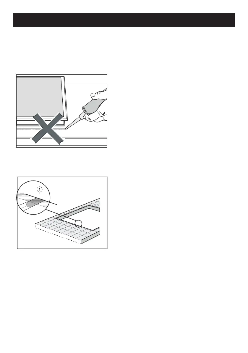 Le fessure e l’area tratteggiata sotto la superficie d’appoggio del piano di cottura devono essere lisce