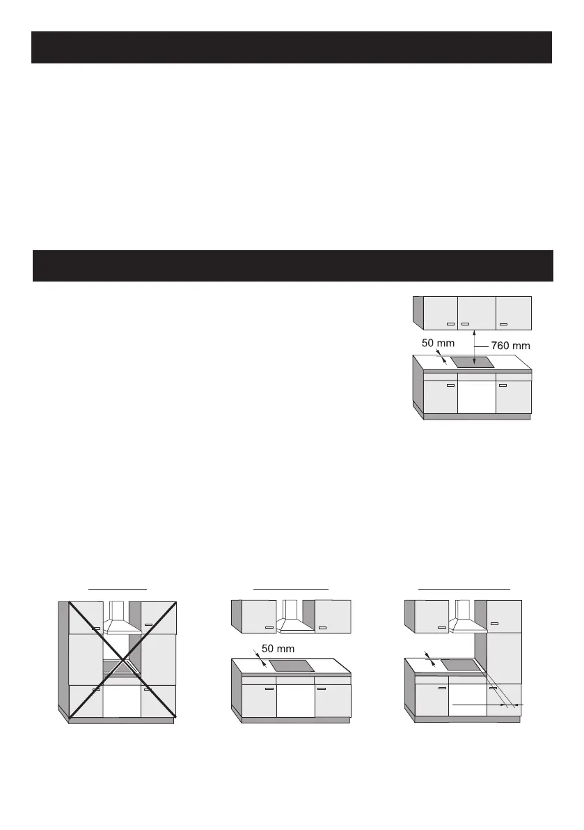 - This hob must not be installed above ovens or cookers unless these have a built-in cooling down fan.
