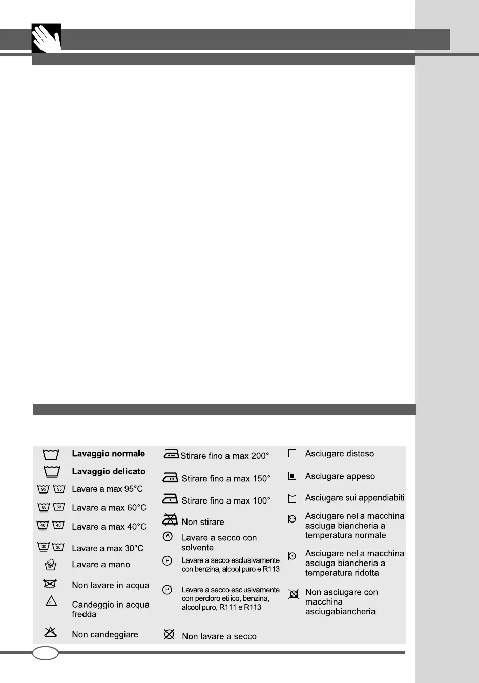 SIMBOLI INTERNAZIONALI PER IL TRATTAMENTO DEI VESTITI