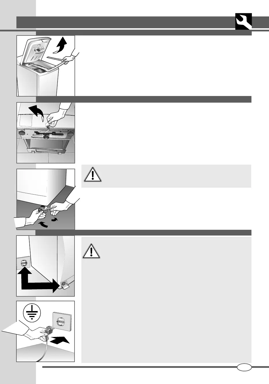 Faire très attention au choix de la position, au nivèlement du lave-linge et à la sécurité