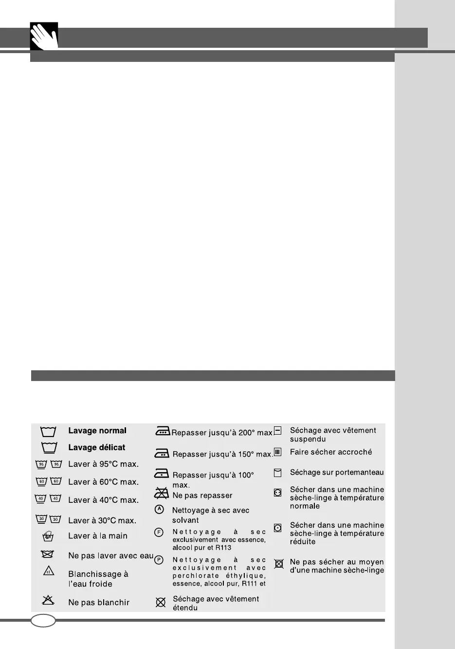 il est conseillé d’examiner les symboles reportés sur les étiquettes du fabricant. Le tableau ci-après peut