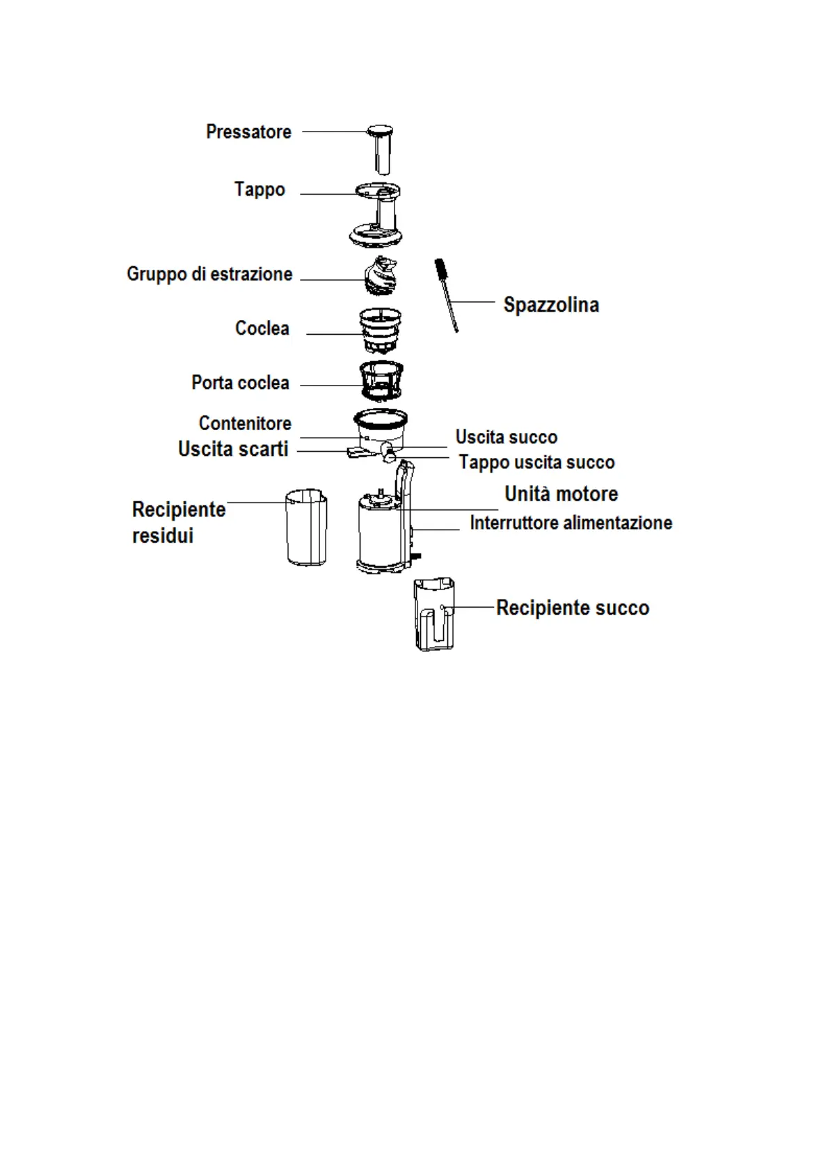 Prima dell'uso ricordarsi di posizionare i contenitori per polpa e succo sotto gli appositi