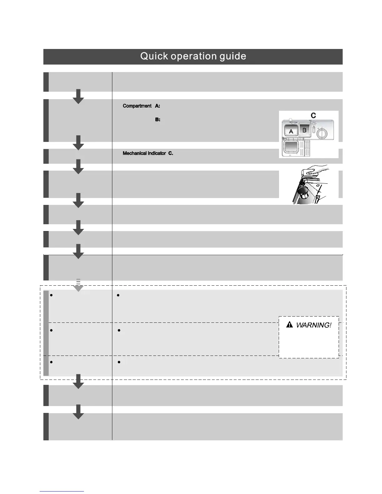 Wa rn i ng: w ait a f e w mi n u t e s ( a bou t 1 5 m inu t es) be fo r e u n l o a di n g t he d i s h w a s h e r t o a vo i d h a n d lin g