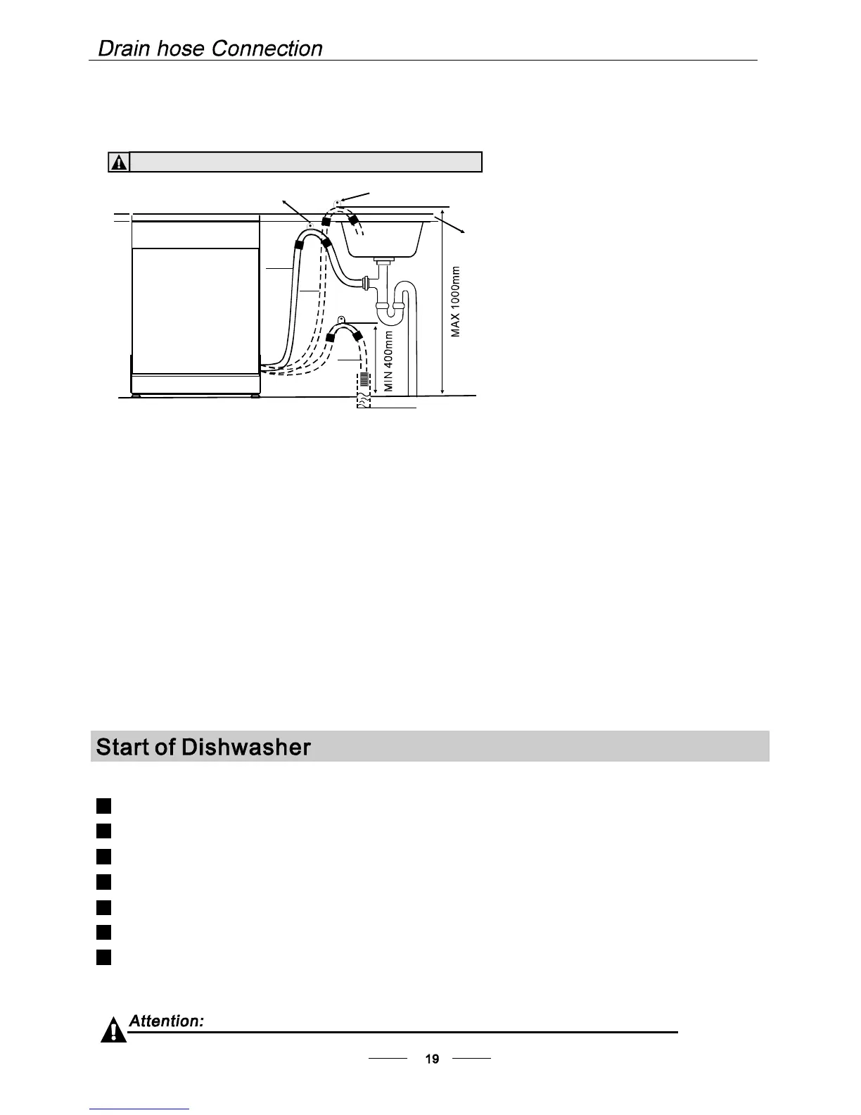 from the bottom of the dish. T he water drain ho se s hould b e fixed by a h ose clip. The fre e end of