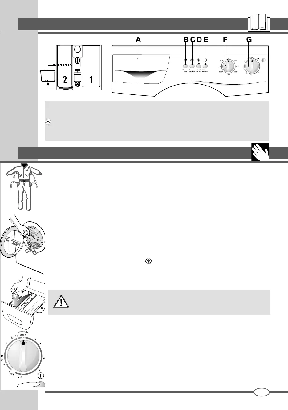 2. Pour améliorer les performances de lavage, introduire la lessive dans le lave-linge sans la comprimer