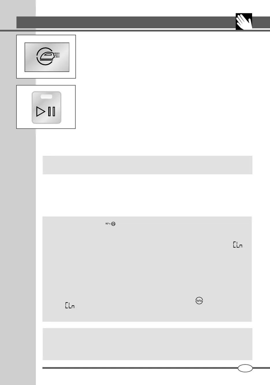 tions (enabled depending on which stage of the wash cycle you are in). If the water
