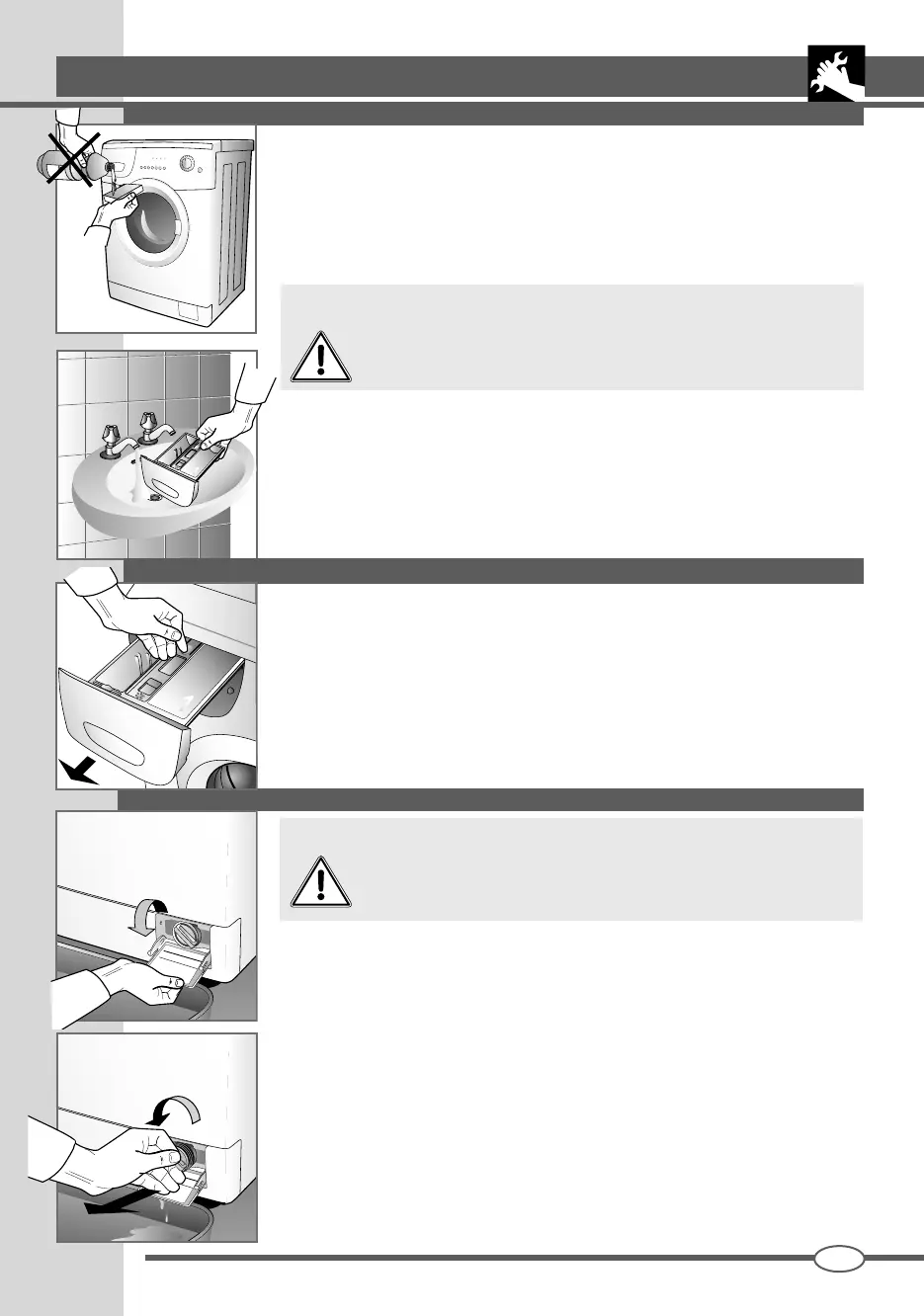 Lavare periodicamente le vaschette dei detersivi. A tal fine estrarre lo scomparto