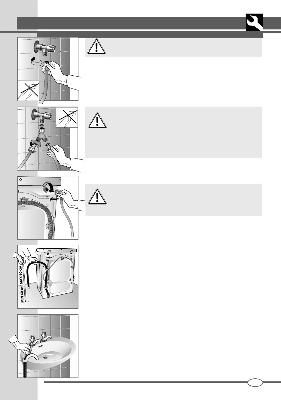 ▼ E’ importante non allacciare ermeticamente il tubo della macchina alla conduttura