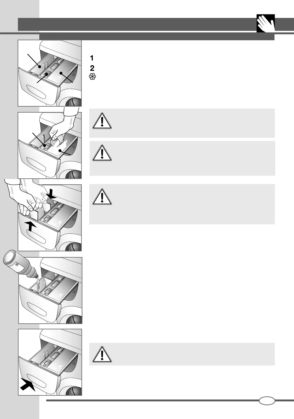 ▼ chiudere il cassetto del detersivo prima di iniziare il lavaggio.