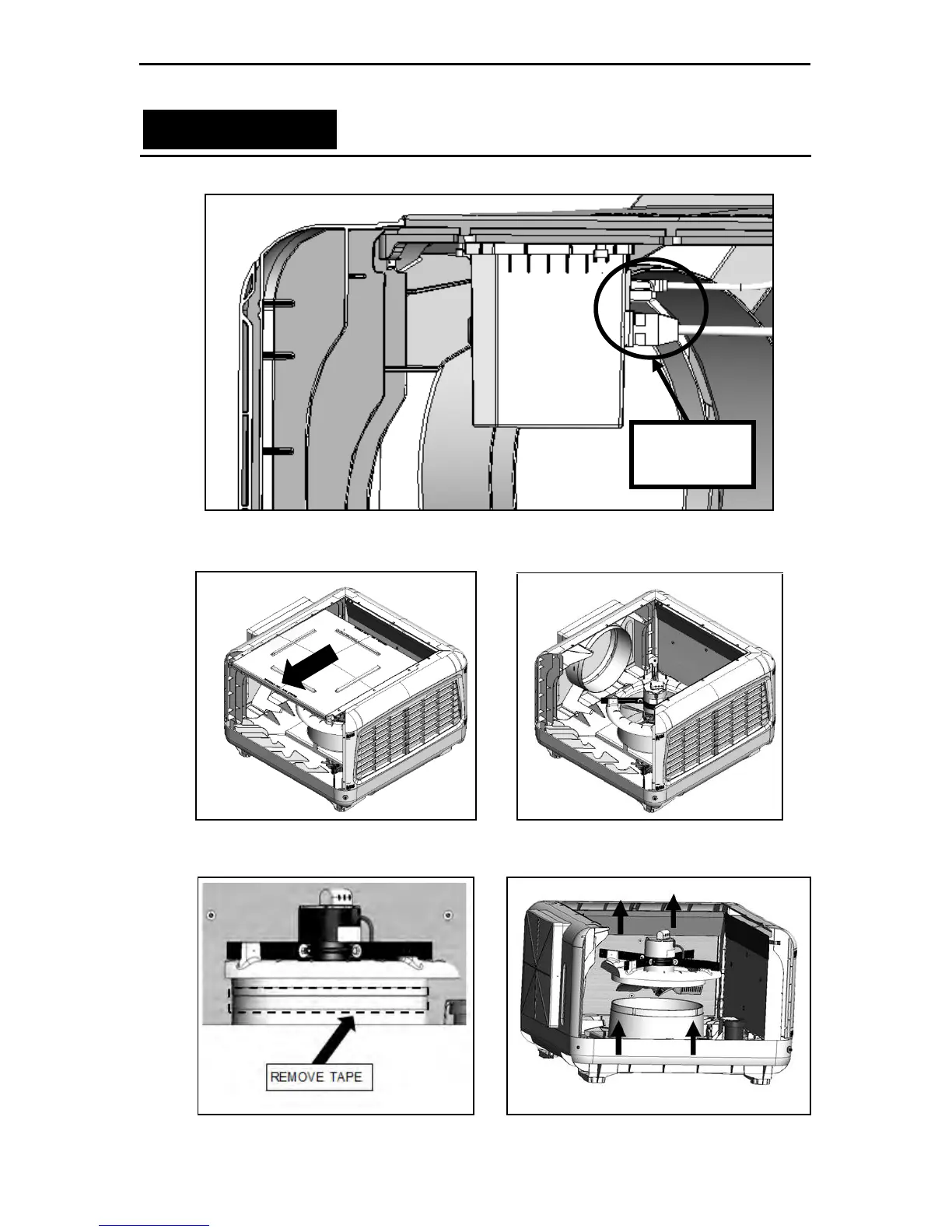 g. Remove the tape fastening the fan assembly to the base. Carefully lift the fan from