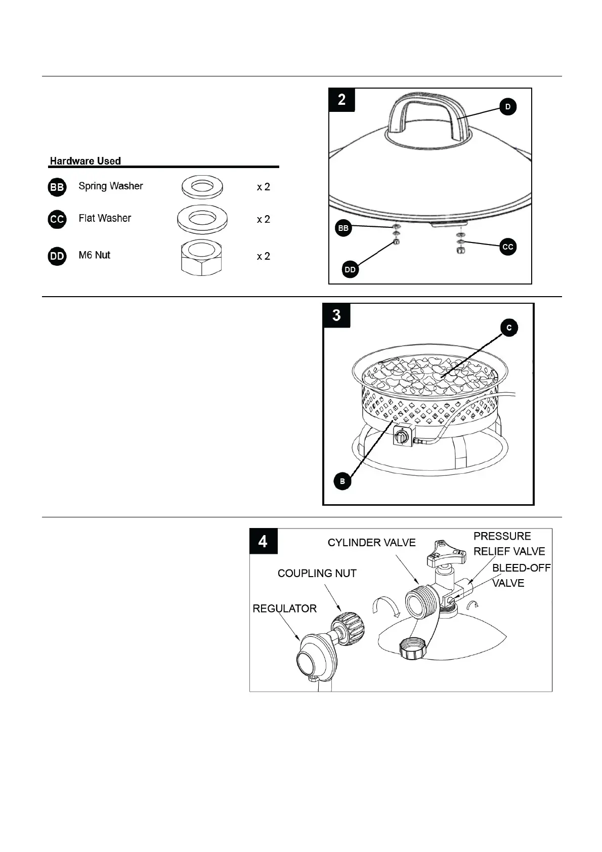 handle (D). Secure with M6 nut (DD), tightening