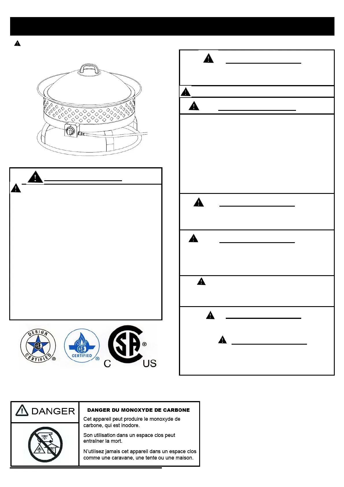PROPANE. NE la raccordez PAS à une source