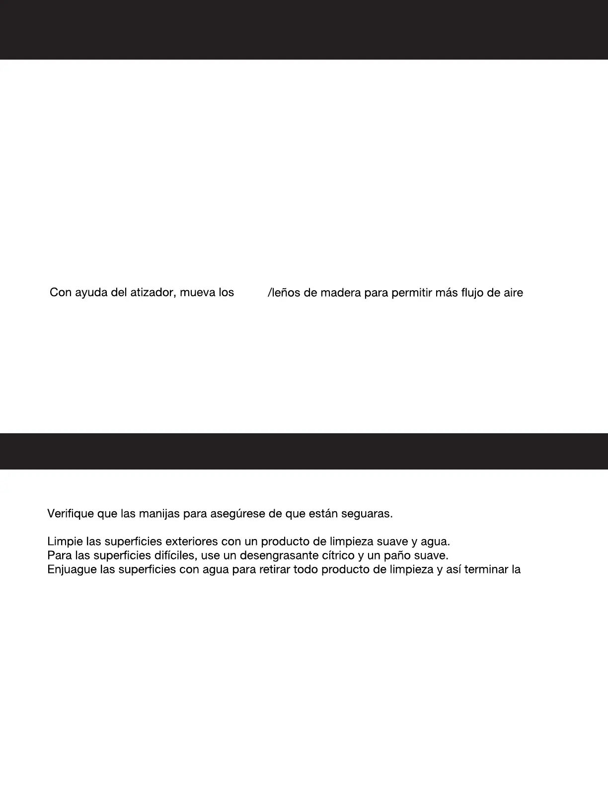 2. NO use agua para apagar ya que esto es peligroso y puede dañar la chimenea.