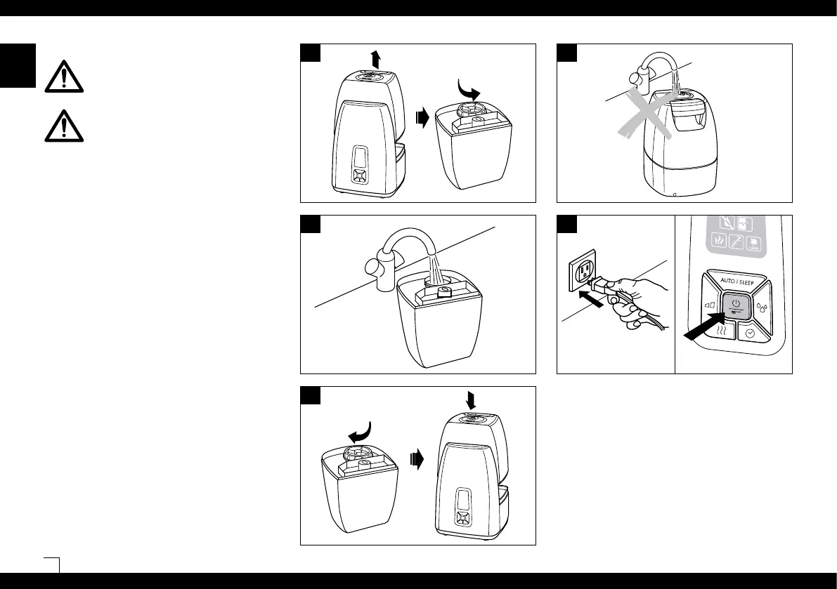 • Do not pour water into the mist outlet of the appliance