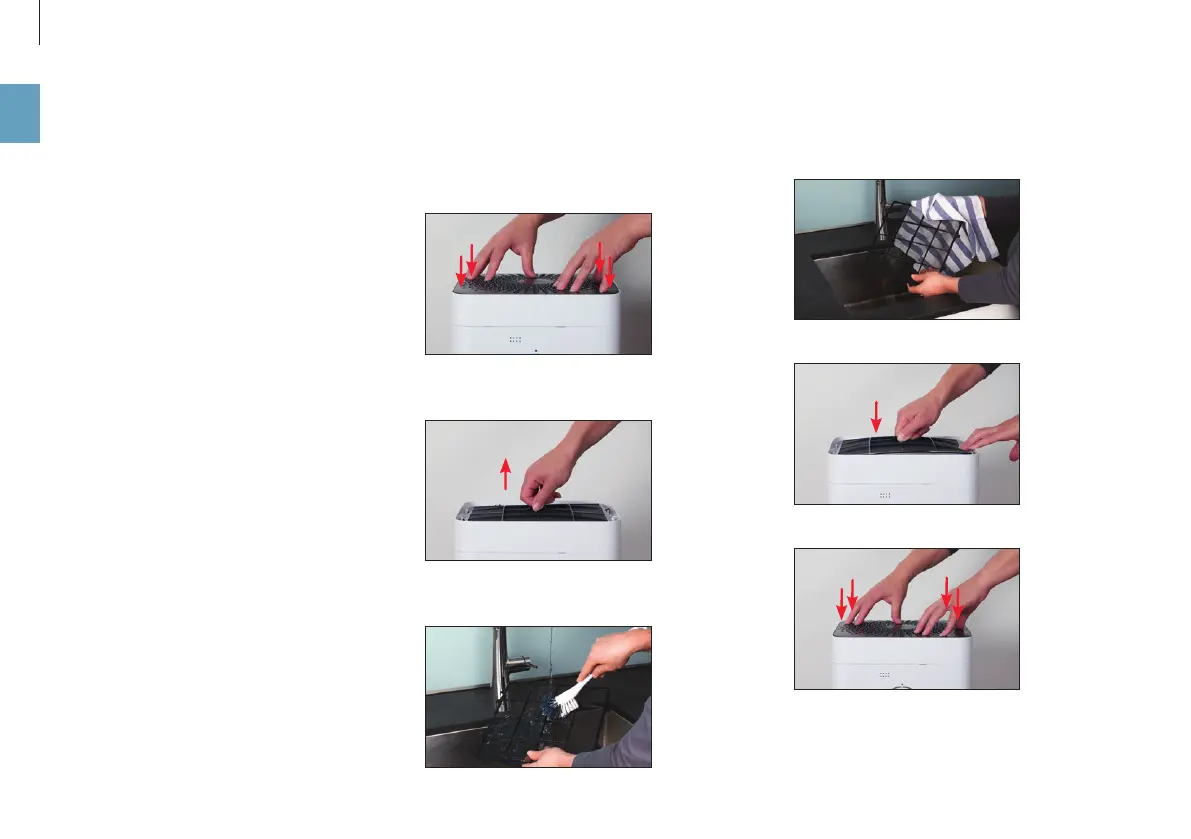 3. Lave el filtro previo con un cepillo limpiador de-