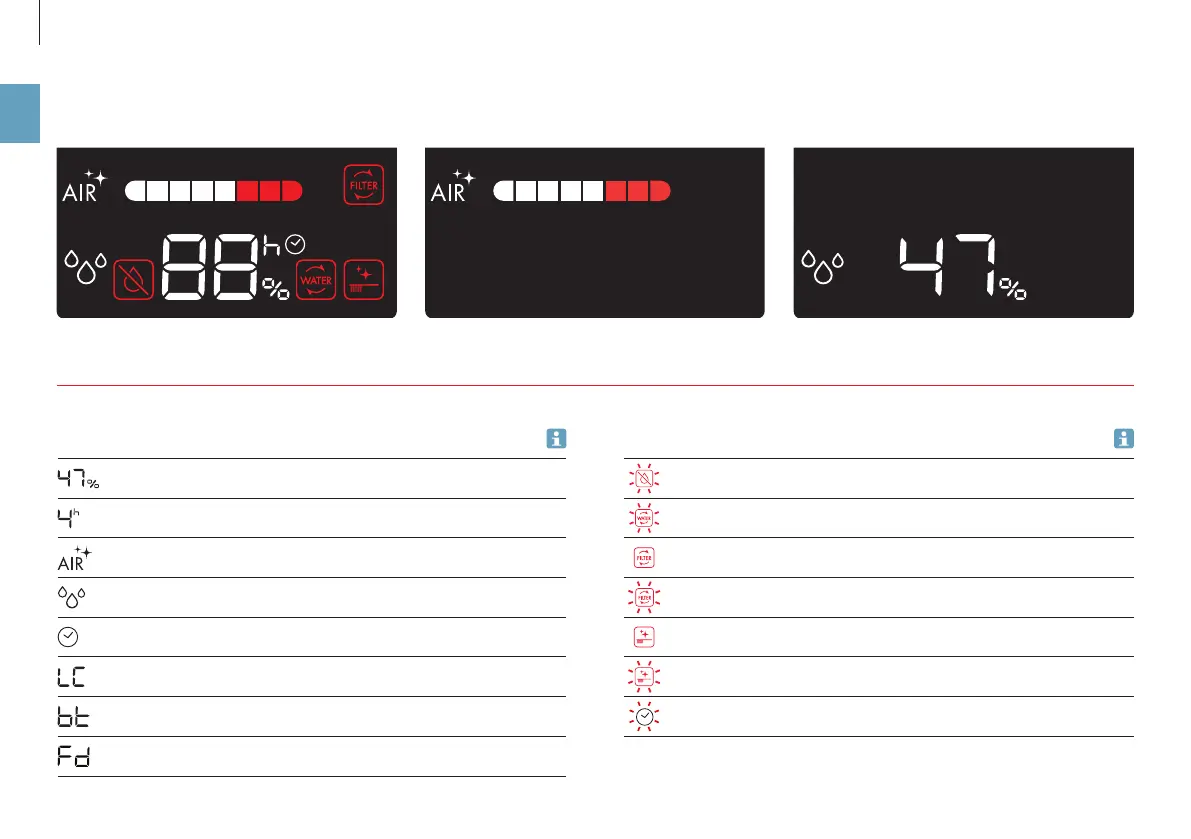 Overview of all indicators on the display Indicator for air purity Indicator for humidity